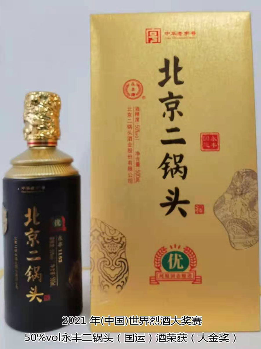 北京二鍋頭酒業股份有限公司傳承老北京二鍋頭傳統釀造技藝,產品選用優質高粱為原料,以麩曲為糖化發酵劑,采用老五甑發酵法、混蒸混燒、看花接酒、掐頭去尾、長期儲存、精工勾兌而成。產品多次獲得各種優質產品稱號,“永豐牌”商標2000年度、2004年度、2007年度連續三屆被北京市工商行政管理局認定為北京市著名商標;2003年9月,“永豐”二鍋頭、京王子酒被評為北京市優秀新產品獎;2004年,被授予“中國白酒質量優秀產品”及首都市場“質量、信譽、服務”優秀企業、優質產品稱號;2006年11月,被評為“中國歷史文化名酒”;2007年12月,被評為“AAA”級信用企業,同年榮獲“中國質量過硬知名品牌”;2011年5月,“永豐”牌被中華人民共和國商務部評為“中華老字號”;2021年10月,在2021國際酒類(中國)大獎賽中,北京二鍋頭酒業股份有限公司共獲得五枚金牌,其中38%vol永豐酒坊老字號酒、46%vol永豐品鑒酒、52%vol醉流霞瓷瓶酒、50%vol永豐粱大俠(典藏)酒四款產品榮獲“金獎”,50%vol永豐二鍋頭(國運)酒榮獲“大金獎”。此次大獎賽北京二鍋頭酒業股份有限公司榮登“金獎”之首,得到了國際酒類(中國)大獎賽組委會及全國頂級評酒大師、酒業泰斗專家們的一致好評,肯定了北京二鍋頭酒業股份有限公司專業技術人員高超的技藝和敬業的工匠精神。