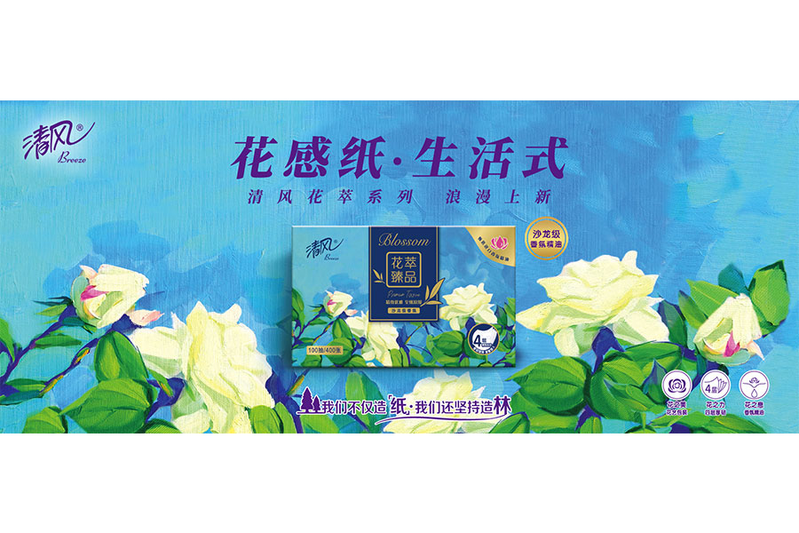 “清風”是金紅葉紙業旗下主打品牌,曾被評為2020年C-BPI中國品牌榜紙巾/卷紙類第一品牌;2021中國行業影響力品牌榜生活用紙行業“創新品牌獎”;2022年度中國生活用紙行業匠心產品。它得益于企業“林、漿、紙”一體化的優勢,以原生純木漿制造,讓消費者的家庭生活更純凈幸福。并通過與大型綜藝節目、視頻網站、社交媒體等合作,與消費者進行全面溝通。同時對旗下其他品牌鉑麗雅、唯潔雅、真真、怡麗的產品也進行了全面升級。