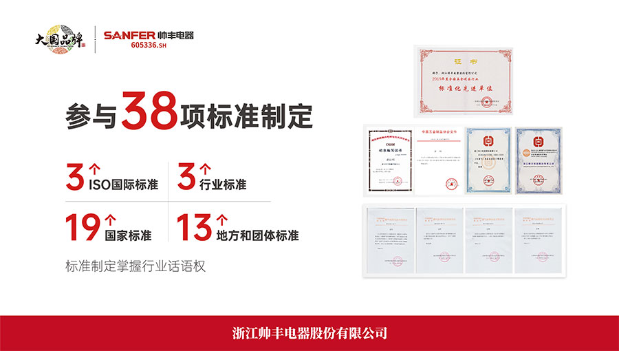 帥豐電器堅持以品質(zhì)為導(dǎo)向,不斷完成“布新、創(chuàng)新、刷新”等突破。持續(xù)以“高端化、科技化、健康化”三大戰(zhàn)略為引擎,擁有“中國合格評定國家認(rèn)可委員會認(rèn)可實驗室”,包含燃?xì)狻㈦姎狻⒃肼暋馕督档投取⒂椭蛛x度、環(huán)境、包裝等多個行業(yè)一流的試驗室,擁有國際國內(nèi)先進(jìn)的專業(yè)檢測設(shè)備,對集成灶產(chǎn)品各項指標(biāo)進(jìn)行全方位的檢測,為公司集成灶產(chǎn)品提供了質(zhì)量保障,獲得紹興市人民政府頒發(fā)的“市長質(zhì)量獎”和中國質(zhì)量檢驗協(xié)會頒發(fā)的“全國產(chǎn)品和服務(wù)質(zhì)量誠信示范企業(yè)”“全國廚房電器行業(yè)質(zhì)量領(lǐng)先品牌”等榮譽(yù)。作為技術(shù)標(biāo)準(zhǔn)和行業(yè)規(guī)范的引領(lǐng)者,帥豐還參與3個ISO國際標(biāo)準(zhǔn)、20個國家標(biāo)準(zhǔn),4個行業(yè)標(biāo)準(zhǔn),16個地方團(tuán)體標(biāo)準(zhǔn)的起草與制定工作。