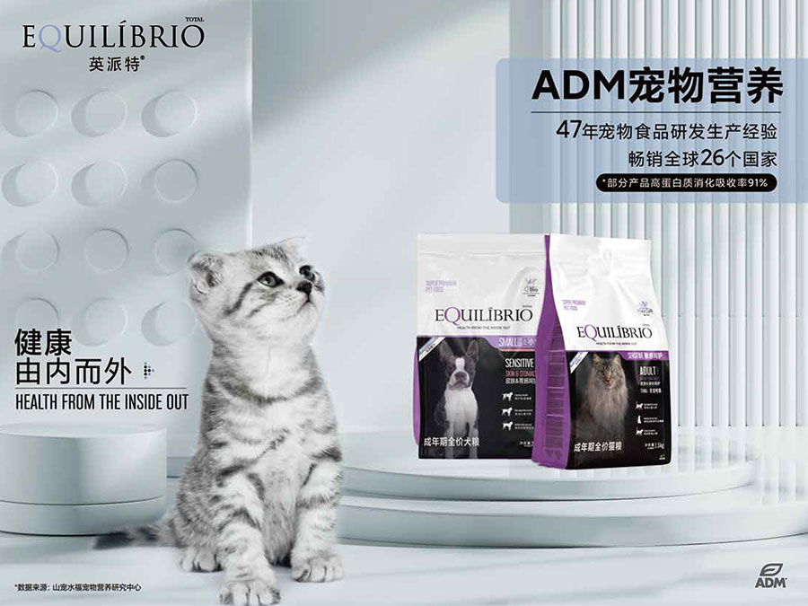 Equilibrio英派特是ADM寵物業務最重要的全球品牌之一。目前在全球26個國家銷售Equilibrio英派特的品牌定位是ADM寵物業務超優質寵物主糧品牌。以科學研究和技術手段為基礎,致力于生產最優質的寵物食品,為寵物提供最新和最先進的均衡營養來提高寵物的生活品質和質量。英派特為寵物提供全生命階段的食品,是一家領先的創新企業,引領著植物基消費者和取代石油基產品的工業解決方案,邁向新未來。ADM是卓越的農業供應鏈管理者和加工商,通過將當地需求與ADM的全球運營能力相結合,確保食品安全。