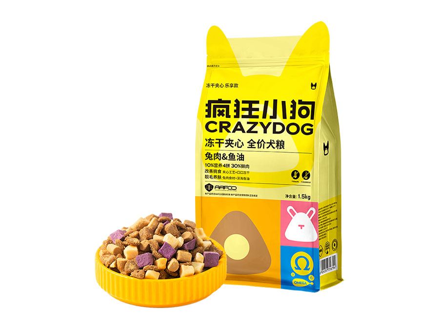 瘋狂小狗創建于2014年,以「陪伴毛孩子健康又快樂地成長」為使命,以「為中國千萬養寵用戶,提供最健康+最美味的犬食品成為中國犬食品第一品牌」為愿景,以「快樂、勇敢、坦誠」為價值觀,專注于寵物食品研發與制造,在9年的發展中成為寵物食品行業領先品牌,是實至名歸的“國民寵食”,為千萬養寵家庭提供了優質的產品和服務體驗。