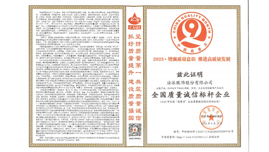 誠信經營是企業的道德底線,保證質量安全是企業的責任。法派決心落實質量誠信的各項承諾,牢固樹立“誠信至上、以質取勝”的經營理念,以誠信鑄品牌,以質量求發展。