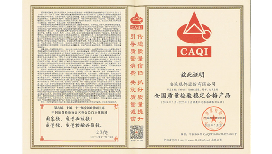 質量是“法派”的生命,法派公司領導始終把質量作為最重要的環節來抓。首先,從全體員工的質量意識教育抓起,實行全員培訓制度。新員工上崗之前,先進行崗前培訓,接受質量教育,強化全員質量意識。同時還加強質檢隊伍的建設,使產品質量得以有效的控制。特別是法派公司成立之初,就積極貫徹ISO9002質量管理體系標準,現已建立了完整的質量管理體系,并于1999年9月通過認證。同時法派還將“致力環保和安全生產”作為兩個重要課題來抓,深入貫徹ISO14001國際環境管理體系和OHSAS18001國際職業健康安全管理體系標準,使產品質量在市場調研、設計開發、技術準備、物資采購、生產制造、檢測試驗、產品銷售、售后服務等各環節得到有效認證和保障。