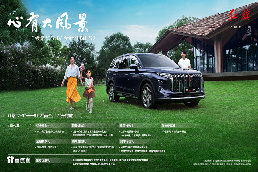 心有大風景,胸懷大夢想,奔向新未來。“紅旗”攜手中國航天保障共擎“中國夢”的同時,將以全新紅旗HS7為代表的SUV產品,讓新時代有為人士與萬千和美家庭,一起得遇更大的風景,成就祥和美滿的幸福夢。