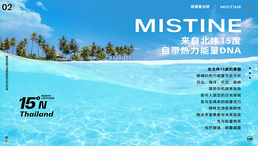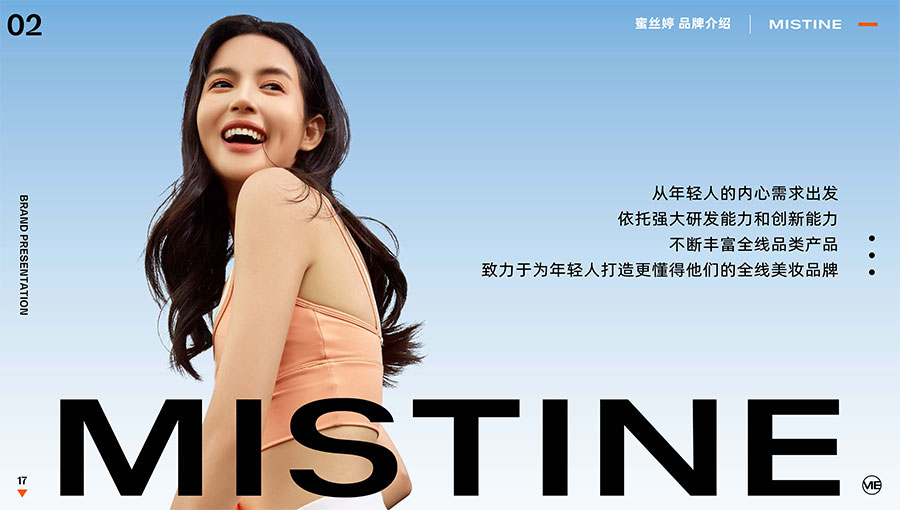 MISTINE蜜絲婷1988年始源于泰國,作為知名國際美妝品牌,擁有超過35年的科研底蘊,產品種類涵蓋防曬、美妝、護膚、香水、個護五大類,擁有近6000多個單品暢銷全球20多個國家,專注為全球女性提供豐富、安全、高品質的美妝產品。自2016年進入中國后,MISTINE蜜絲婷以“熱帶青春能量美妝”為品牌定位,為年輕人打造更懂得他們的全新美妝產品,并傳遞獨特的健康活力生活方式。