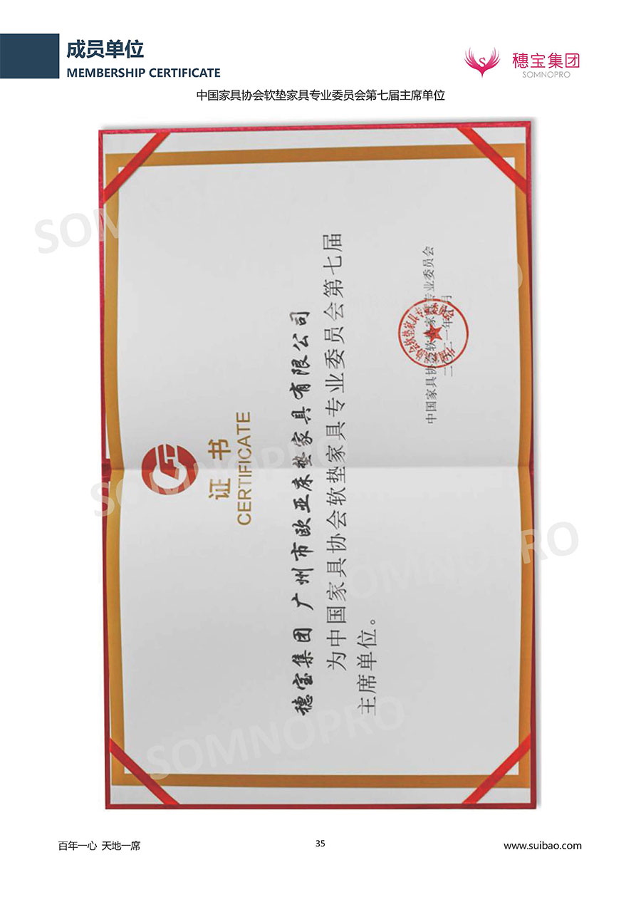綠色家具產業聯盟于2016年8月5日在廣州正式成立,是以“綠色家具、創新發展、提升品質、引導消費”為宗旨的跨行業、跨地域的聯盟組織。2017年,聯盟組織成員入盟評定,共有33家企業入選,其中穗寶作為唯一床墊品牌榮獲此殊榮。