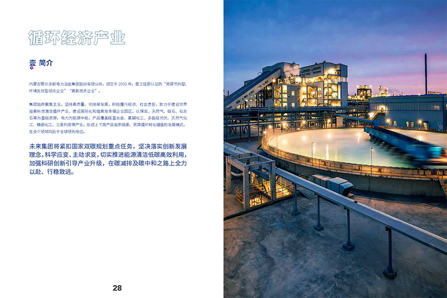 鄂爾多斯集團的循環經濟產業,依托當地豐富的資源,下轄煤、電、冶金、化工及園區綜合服務、供水、物流等產業,精心打造囊括了煤炭采選、發電、鐵合金和氯堿化工產品的生產和銷售的一體化產業結構,形成國內少有的“煤—電—硅鐵合金”和“煤-電-氯堿化工”等循環產業鏈。集團目前是全球生產規模領先的硅鐵生產企業;氯堿化工產品國內市場占有率亦位居前列。