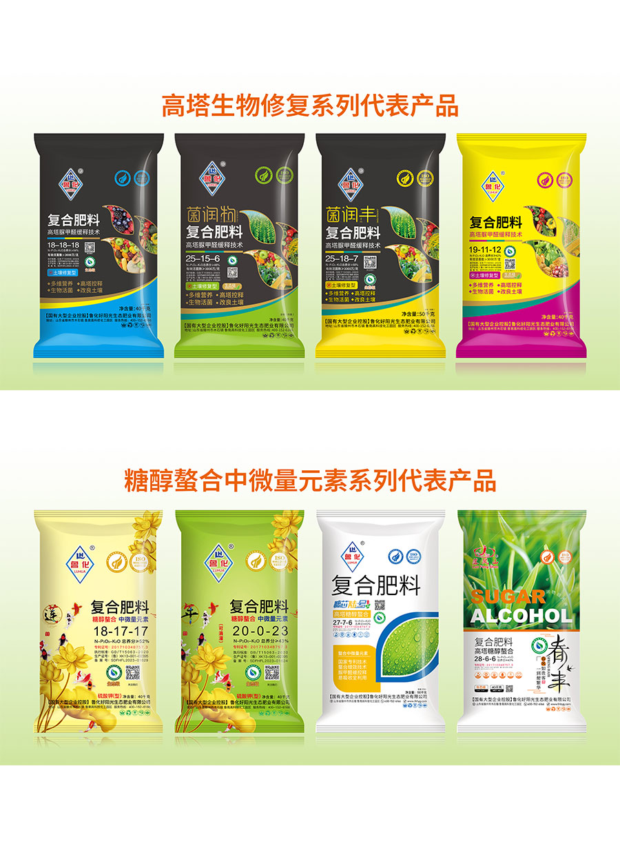 主要產品:魯化好陽光復合肥料、摻混肥料、復合肽硫氮素、水溶肥系列、多肽尿素等產品