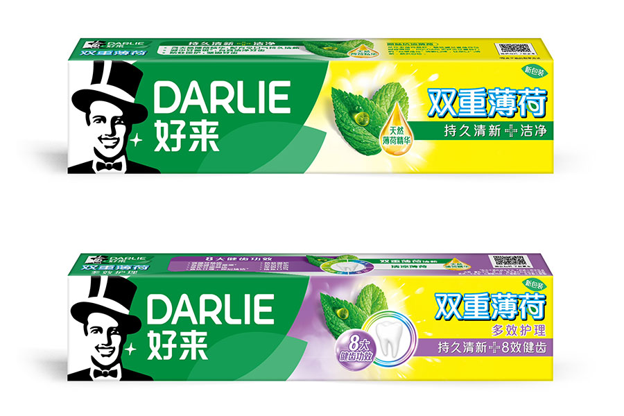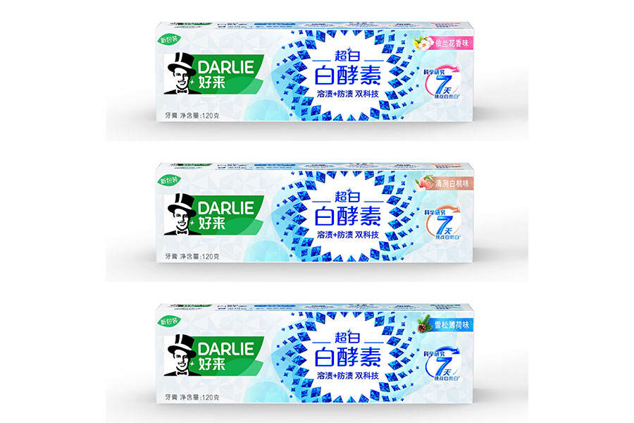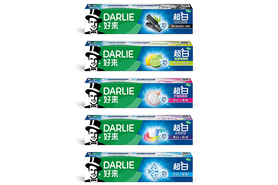 目前DARLIE好來牙膏共有數(shù)十個品種、多種規(guī)格(18g-250g),其中銷往中國大陸市場包括經(jīng)典的雙重薄荷系列、茶倍健系列、超白系列、專研護(hù)齦系列、抗敏感系列、透心爽系列,兒童牙膏系列及新增了白酵素系列和星耀白系列等20個品種,另外還有多個品種同時銷往新加坡、馬來西亞、泰國、中國香港和中國臺灣等市場。