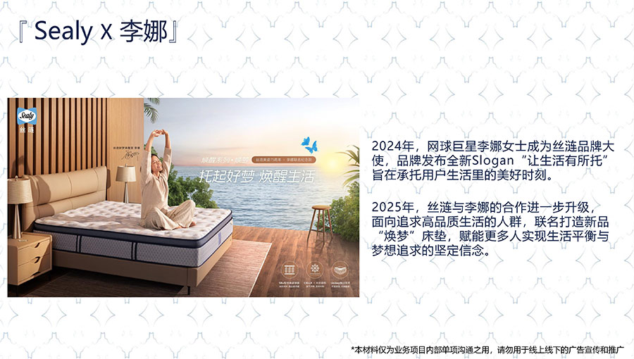 絲漣是上海勞力士大師賽唯一指定床墊及床品品牌,以承托優質好眠為基礎,在熱力揮拍之間盡享優雅與時尚的健康生活方式。