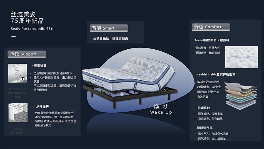 絲漣SEALY1881年誕生于美國,自1885年第一張絲漣床墊問世伊始,便憑借其卓越性能與舒適安睡體驗聲名大噪。1950年,絲漣開創床墊與醫學權威共研的先河,絲漣美姿以科學的脊柱支撐理念徹底重塑了床墊行業。75年來,持續的技術升級和創新使得美姿彈簧不斷進化,只為打造更加舒適健康的睡眠體驗。