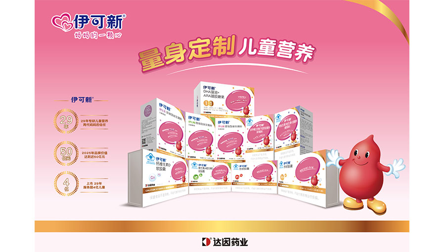 主要產品:伊可新?維生素AD滴劑(膠囊型)、達因?(復方碳酸鈣泡騰顆粒、甘草鋅顆粒、右旋糖酐鐵顆粒、鹽酸托莫西汀口服溶液、西甲硅油乳劑);伊可新?DHA藻油+ARA凝膠糖果、益生菌粉、多種維生素礦物質口服液、鈣鋅口服液、維生素A維生素D軟膠囊、鈣維生素D軟膠囊、鋅軟膠囊