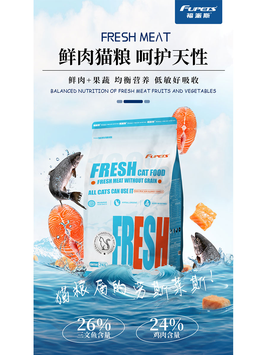 主要產(chǎn)品:福派斯FUPETS鮮肉無(wú)谷犬貓糧、無(wú)麩質(zhì)低敏貓糧和犬貓罐頭、零食