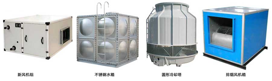 主要產品:排煙風機、混流風機、防火閥、鋁合金風口、新風機組、玻璃鋼通風管道、水箱、冷卻塔、電纜橋架等