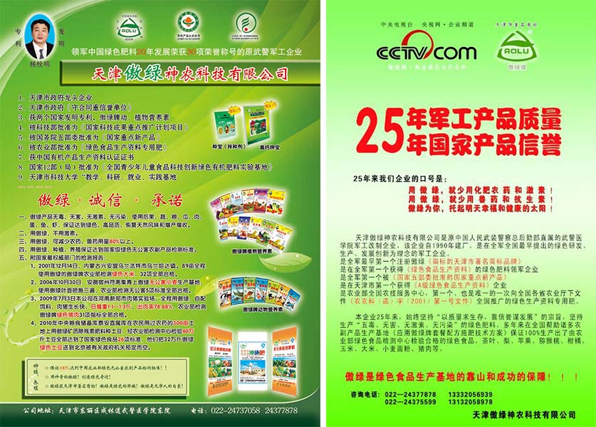 傲綠公司堅持“以質量求生存,靠信譽謀發(fā)展”的企業(yè)宗旨,一定讓全國的農民朋友:用神奇的傲綠,創(chuàng)造綠色奇跡!