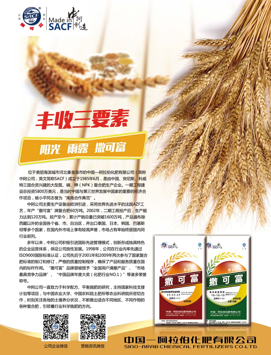 中阿公司一直致力于科學配方、平衡施肥的研究,主持國家科技支撐計劃等項目,與中國農業大學、中國農科院土肥所等農業科研院所密切合作,時刻關注各地的土壤養分狀況,不斷推出適合不同地區、不同作物的各種復合肥,引領著行業科學施肥的方向。