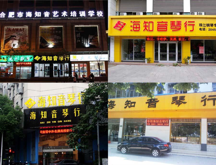 海知音琴行的門店包括合肥長江路店、宣城路店、合作化路店、蚌埠店、阜陽店、蕪湖店、巢湖店、淮南店、安慶店和南京洪武路店,營業面積達到6600平米,成為安徽地區鋼琴年銷量超7000臺位居全國鋼琴銷售量前列,成為中國內地最頂級的琴行銷售企業之一。