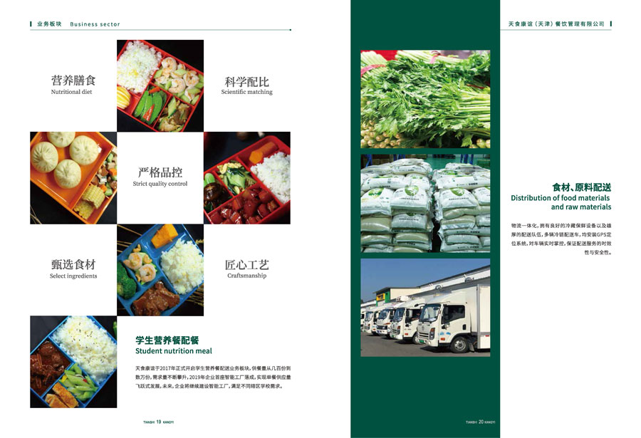 天食康誼(天津)餐飲管理有限公司隸屬于天津食品集團,公司總部坐落于天祥工業園區,總占地面積15000平方米,主營業務涵蓋食材采購運輸、學生營養餐配餐、駐地餐廳服務、美食廣場運營。依托母公司強大食品產業優勢,與眾多知名品牌供應商形成長期合作關系,整合產業鏈上下游資源,打造“從田間到餐桌” 鏈條,成為行業內極具優勢的團膳企業。目前服務的客戶有總醫院、民航大學、天地偉業、農行、鞍山道小學等,涵蓋各行業企事業單位、大中小學。