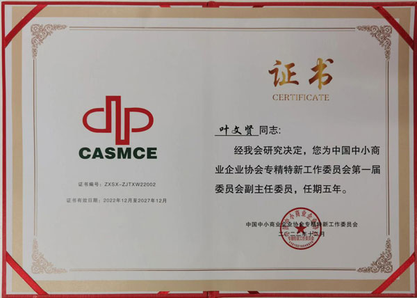作為中國中小商業企業協會專精特新工作委員會的發起單位,柯賽德斯加美石油集團一直以來,堅守能源行業的綠色創新專業之路,努力在產品功能創新、質量保證、服務優質等方面引領品牌發展。該集團董事長葉文賢作為專精特新工作委員會第一屆副主任委員,持久要求集團上下,要苦練內功,從更專業的角度,努力使全體職工,特別是研發團隊、工程技術、生產制造、品質管理等部門的成員,把思維創新再提升、技術能力再提升、發現水準再提升當作不懈努力的方向。