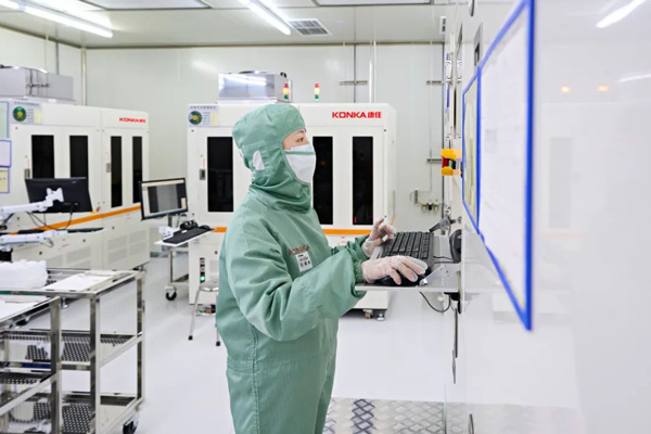 2022年9月30日,重慶康佳半導體光電產業園生產車間內,數條Micro LED、Mini LED產線同時運轉,工人們緊張有序地忙碌著,呈現出一派熱火朝天的景象。