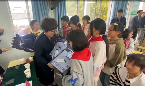 為積極響應市關工委關心下一代工作的號召,4月13日下午,安徽永峰制衣有限公司總經理葉建萍參加了由市關工委牽頭組織黃山日報社、市婦聯、休寧縣關工委等多個部門參加的看望休寧縣南塘小學留守兒童和捐贈校服活動。