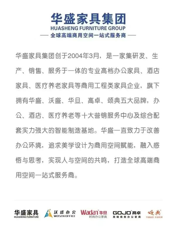 作為在“中國辦公家具重鎮”成長起來的龍頭企業以及中山市辦公家具行業協會會長單位,華盛希望向整個辦公家具產業和消費市場傳遞華盛穩實、積極進取、值得信任和信賴的平臺型、服務型的企業形象,從而團結全市辦公家具行業力量,借力全國乃至全球資源,助力中山市“中國辦公家具重鎮”建設,助推中國辦公家具產業高質量發展,擴大區域知名度和行業影響力,讓辦公家具企業得以更好更快的發展,同時積極籌劃中山打造“中國商用家具之都”!