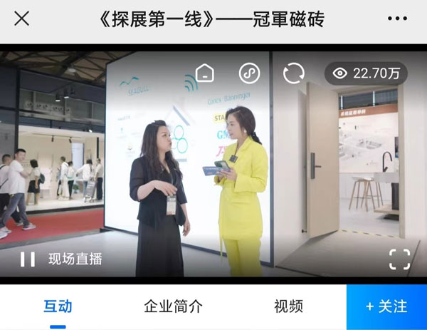 線上經(jīng)濟(jì)時(shí)代,新媒體平臺(tái)各行其道,借此展會(huì)契機(jī),冠軍磁磚攜手騰訊家居|貝殼頻道開(kāi)展“探展第一線”線上直播活動(dòng),由設(shè)計(jì)好物·主理人、騰訊家居|貝殼頻道總裁 張英梅(YOYO)傾情出鏡,冠軍磁磚巖板中心副總經(jīng)理 唐小敏親自上陣。騰訊家居|貝殼平臺(tái)直播,“智造聯(lián)盟”、“冠軍磁磚官方”等賬號(hào)平臺(tái)同步轉(zhuǎn)播,截止直播結(jié)束,線上觀看量超230000人次。從展位帶逛、巖板應(yīng)用區(qū)展示到冠軍巖板優(yōu)勢(shì)分析解讀及品牌戰(zhàn)略布局,帶線上觀眾沉浸式觀展,直播間實(shí)時(shí)粉絲互動(dòng),線上氣氛火熱。