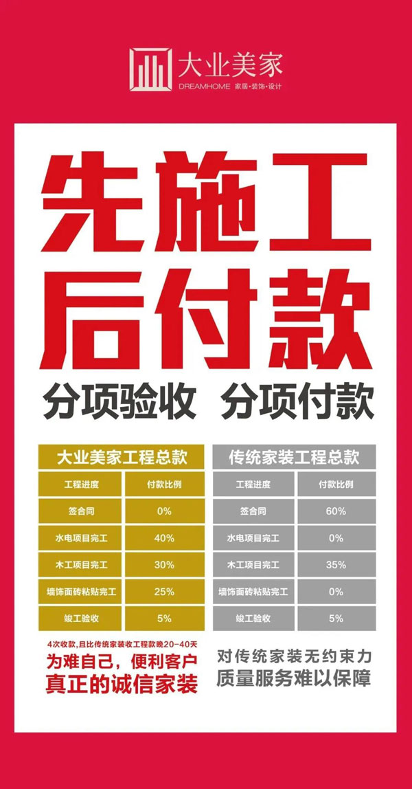 大業(yè)美家誠(chéng)信付款模式