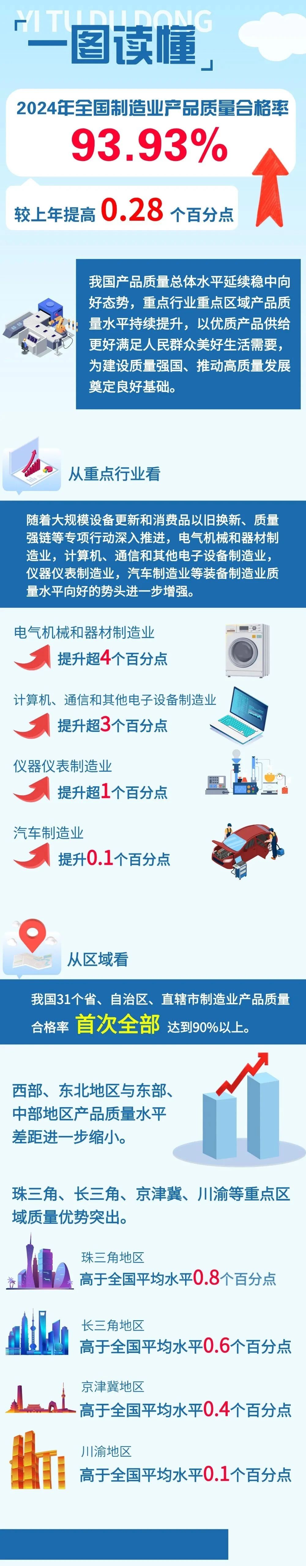 2024年全國制造業(yè)產(chǎn)品質(zhì)量合格率達(dá)到93.93%