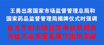 新華社北京4月10日電 國務委員王勇10日出席國家市場監督管理總局和國家藥品監督管理局揭牌儀式。他強調,要堅持以習近平新時代中國特色社會主義思想為指導,全面落實黨的十九大、十九屆二中、三中全會和全國“兩會”精神,扎實有序推進機構改革,全力做好新時代市場監管和藥品監管工作,為滿足人民美好生活需要、促進經濟高質量發展作出更大貢獻。
